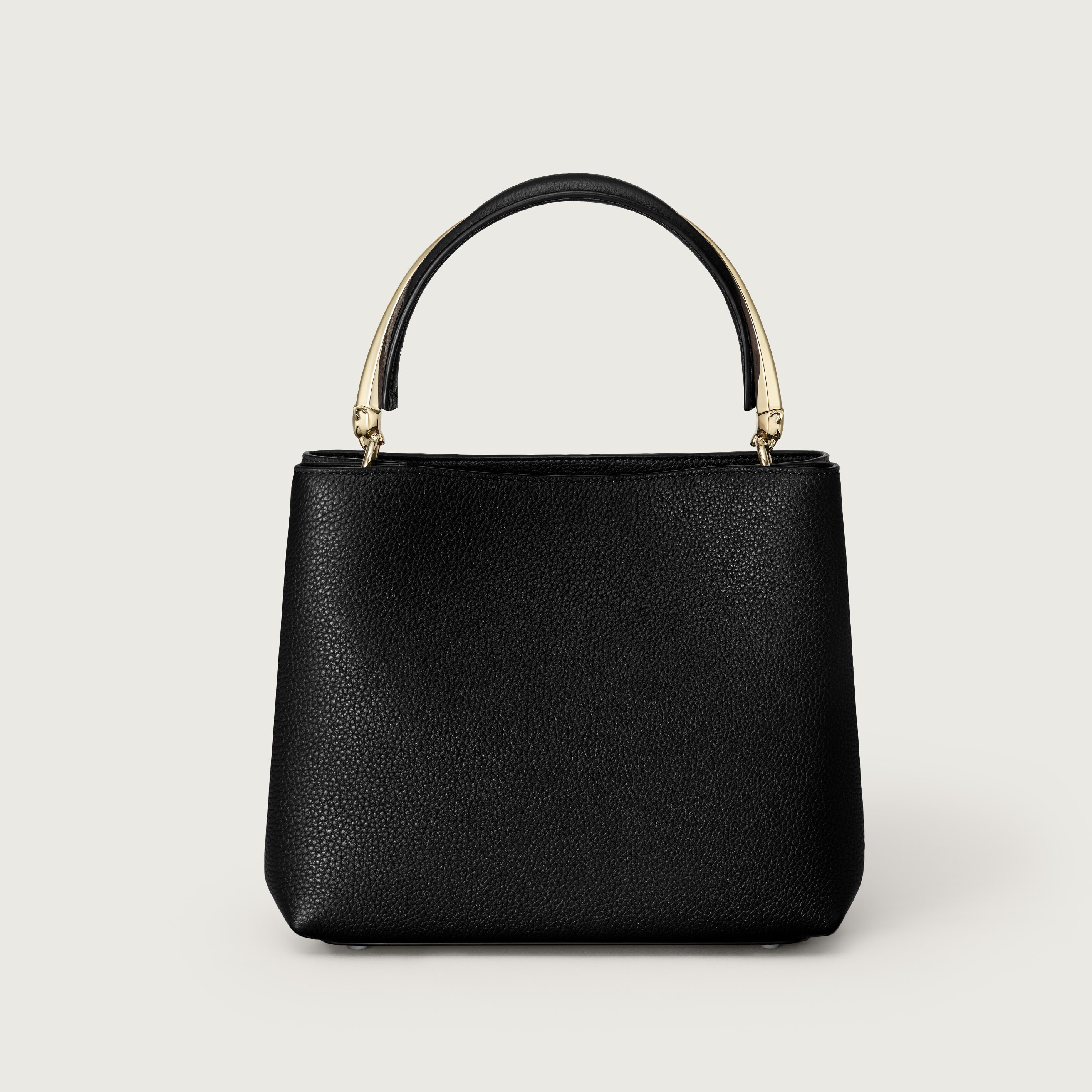 Precious and triumphant, the iconic feline frames the handle of the Panthère Double bag.